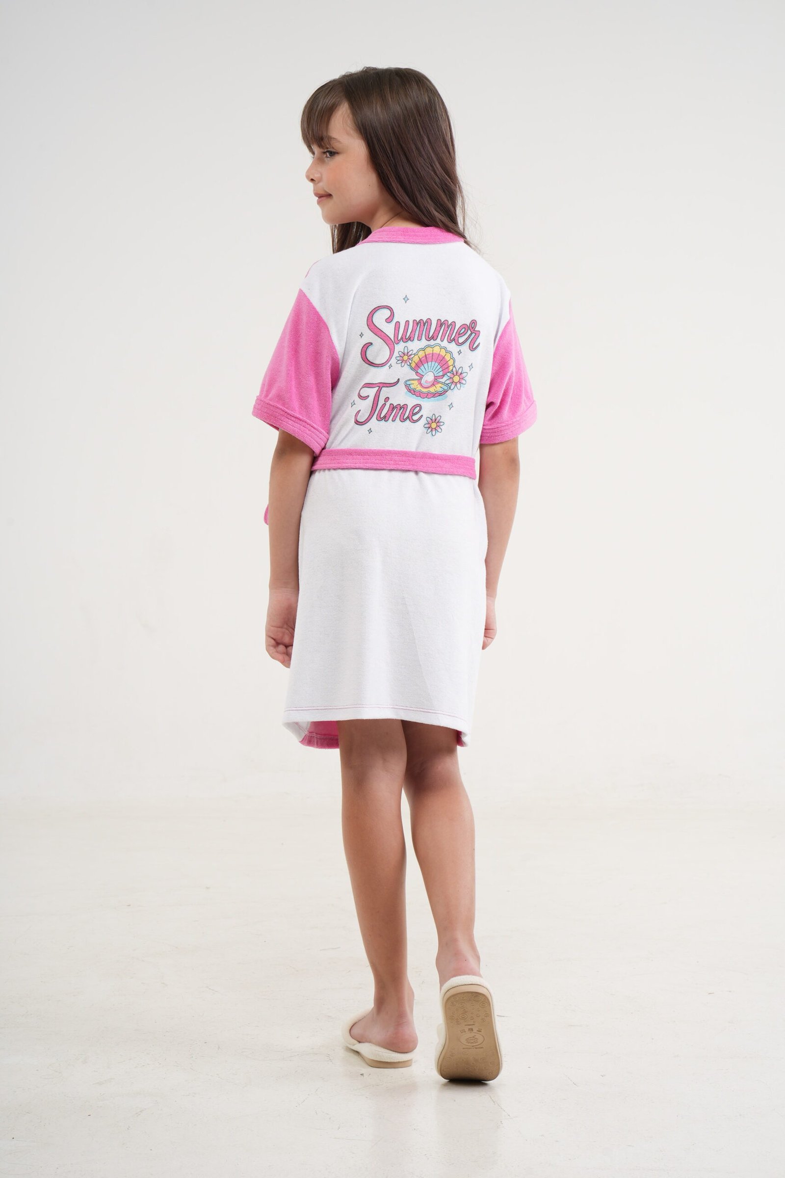 Roupão Atoalhado é Praticidade e Conforto! Liso com uma estampa encantadora nas costas.